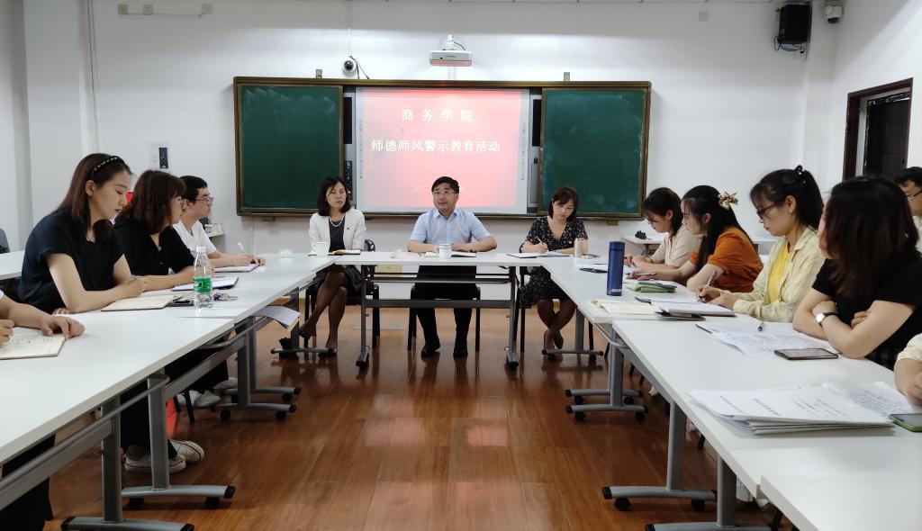 进一步推进我院师德师风建设工作,切实加强教师职业道德建设和教师队伍管理,深入推进校师德师风建设活动开展,7月2日下午商务学院在教学楼309开展了师德师风警示教育活动,校党委书记姚奇富出席并作了重要讲话,学校组织部部长刘杨,以及商务学院全体教职工参加活动,活动由商务学院党总支副书记(主持)、常务副院长陈海飞主持。