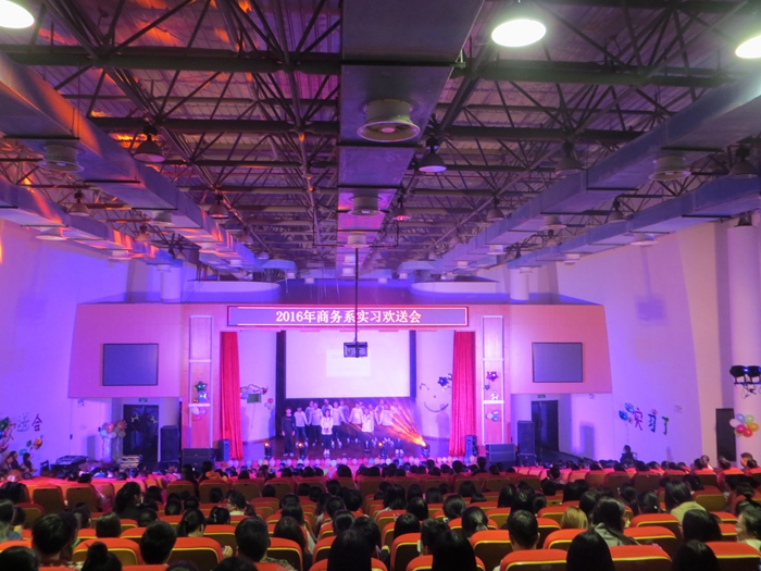 为热烈欢送14级会计学生与15级会计3+2班的学生走上实习岗位,展现商务系学子风采,2016年11月1日晚上,2016年商务系实习欢送会在我校报告厅隆重举行。