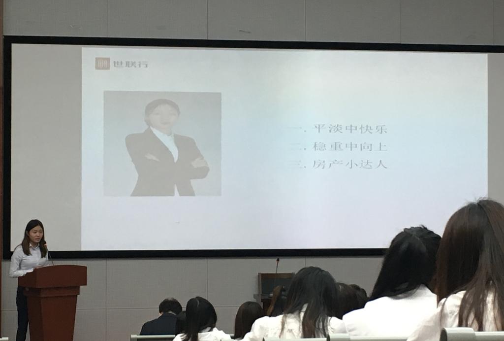 在宣讲会上,现任职于杭州世联卓群房地产咨询有限公司的商务系2015届毕业生赵珠以学姐的身份,向在座的学弟学妹们分享了自己的实习以及工作经历。她从“平淡中快乐”的工作氛围、“稳重中向上”的工作态度、“房产小达人”的工作目标三个方面出发,结合自己在世联公司从大三实习一直到毕业后转正并成为业务骨干的经历,鼓励学弟学妹们能够积极参加各单位的面试、找到自己心仪的实习单位,并对学弟学妹们在此阶段比较感兴趣的问题做了一一的列举和解答。赵珠同学的此次宣讲给即将踏上实习就业之路的学弟学妹们做了一个极好的引领和示范,相信会对商务系2020届毕业生有所启发。