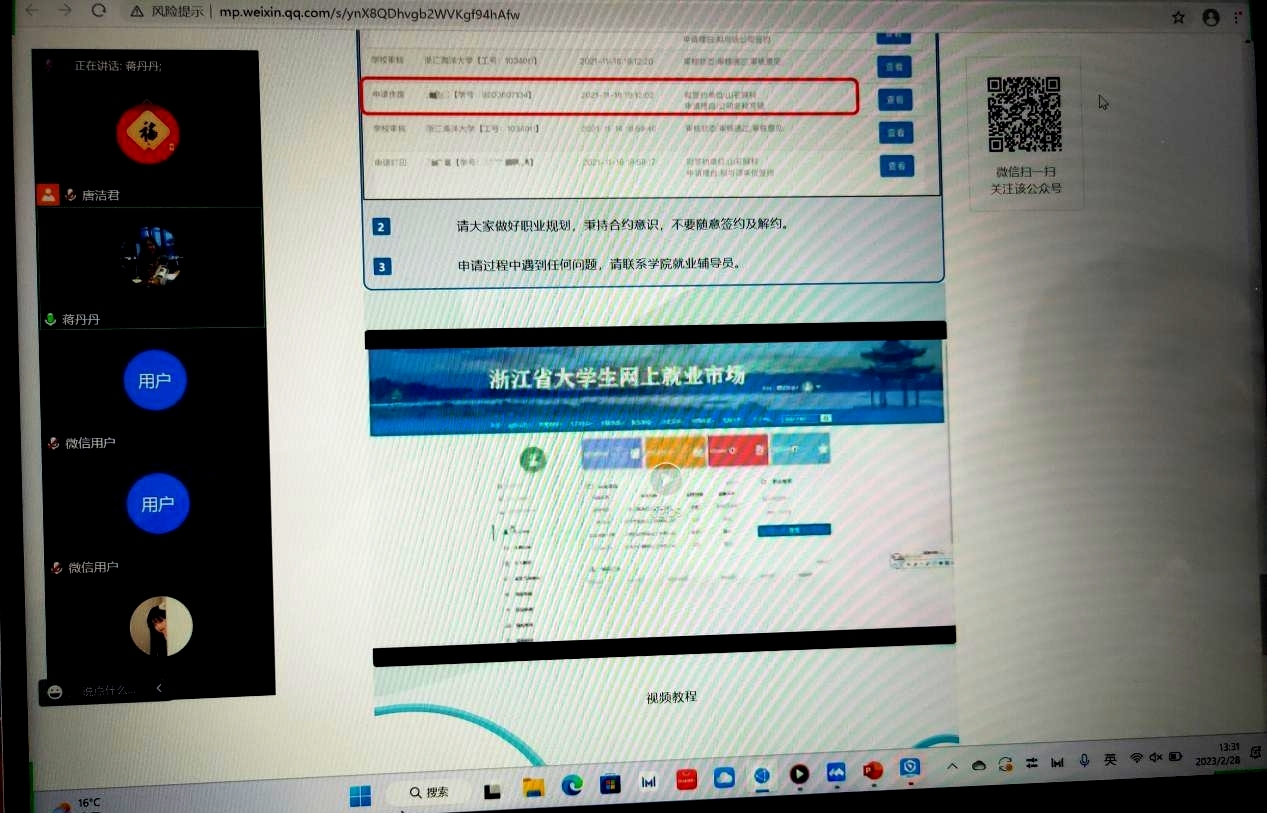 蒋丹丹老师就2023年就业相关政策做了解读,对三方协议网上签订步骤做了详实的讲解,并就毕业生档案派遣中的注意事项做了提醒。