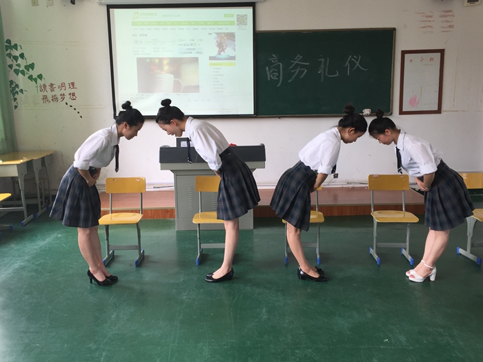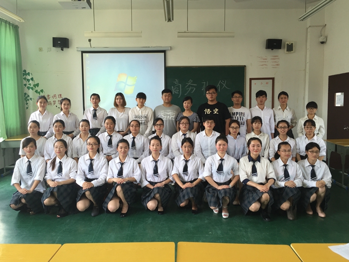 2016年6月21日,为提升商务系学生的整体形象,增强学生的自身素质和商务能力,14会计1班、2班《商务礼仪》课程考核暨商务系礼仪展示在教室414举行。此次展示由王璐老师主持,商务系教学秘书范丽青参与了本次展示。