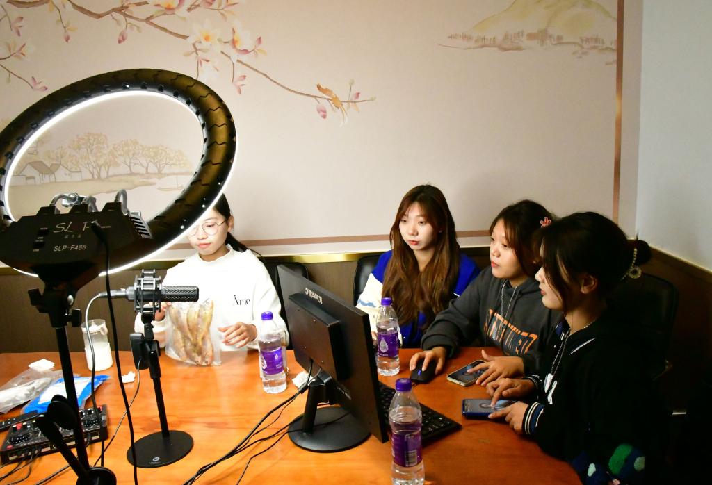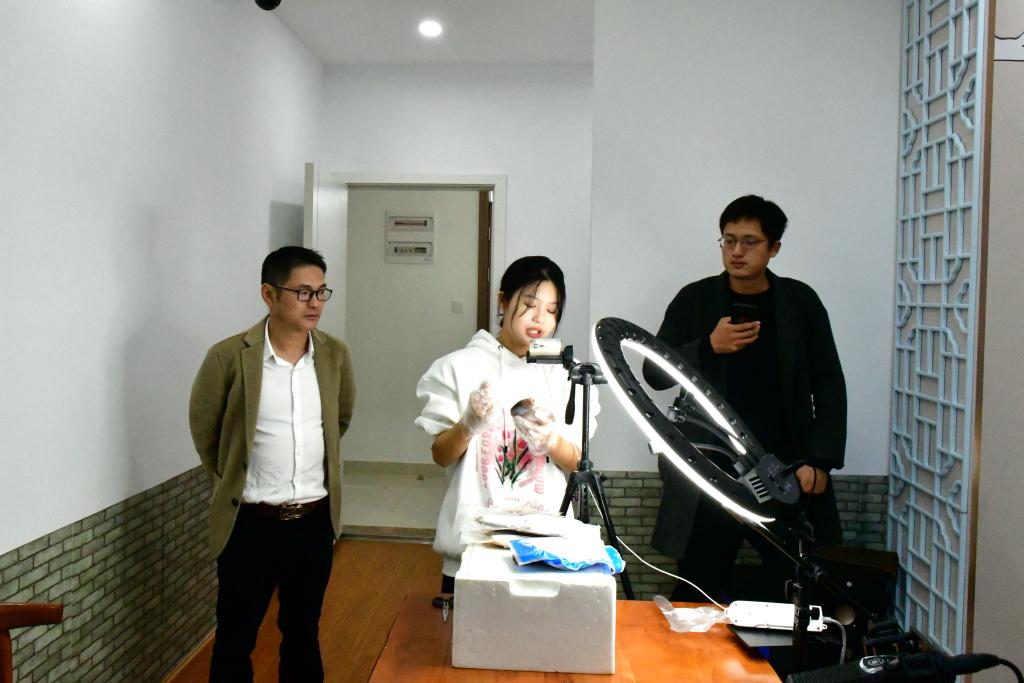 仪式结束后,大家实地参观了商务学院新启用的实训室,以及学生们热火朝天的海产品直播现况。