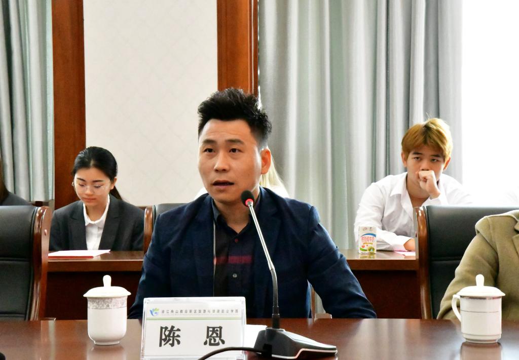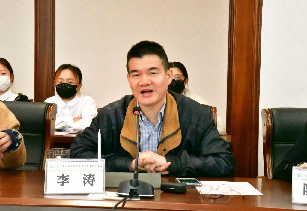 李涛副校长在讲话中指出:第一,企业家创业的艰辛和汗水是社会共识的,创业精神值得我们学习;第二,校企合作能帮助学生大大提升综合能力,对人才培养有很大的必要性;第三,期望学生的努力能达到企业的认可,全方位的校企合作,能共同为舟山经济做贡献。