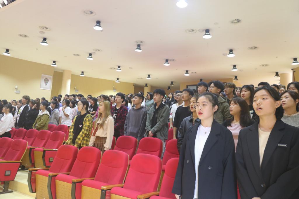 大会在隆重的国歌声中拉开序幕。商务学院学生会主席叶斌斌与20级电商1班新生张慧霖分别作为老生代表、新生代表发言,她们共同表示要树立远大理想、努力学习拼搏。