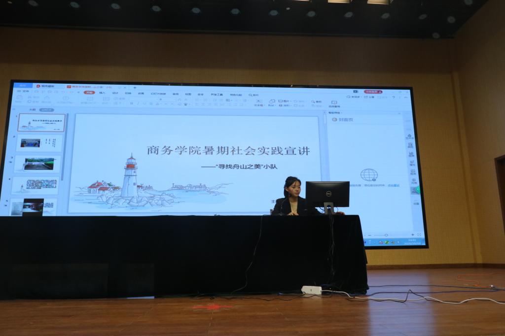 最后,大会还安排了暑期实践小分队的两位队长金芷颖、叶斌斌为全体新生分享了暑期社会实践经历,号召同学们积极投身社会实践活动。