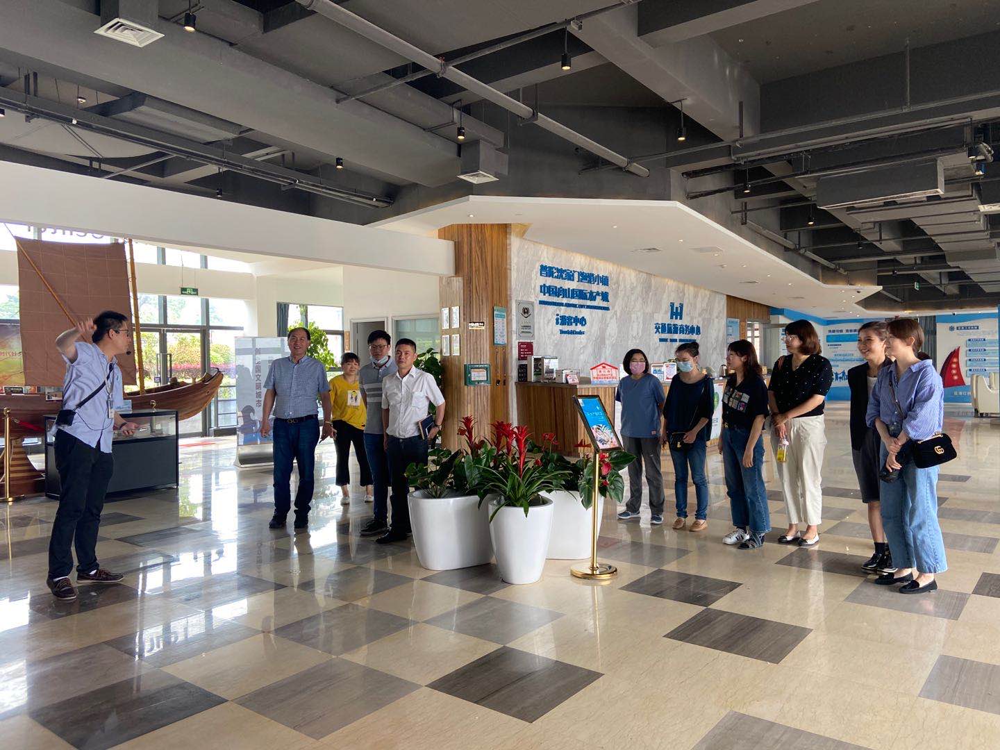 在沈家门渔港小镇电商孵化基地负责人、舟山港和供应链公司负责人袁静波先生的带领下,商务系教师参观了沈家门渔港小镇客厅,考察了综合体创新创业办公室场地、直播培训基地和全民直播中心以及普陀区水产品精深加工综合体,详细了解了沈家门渔港小镇建设项目的相关情况及港和供应链公司的运作模式、发展现状,并开展座谈。