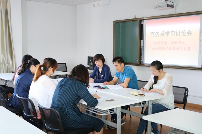 为积极响应学校“解放思想、创新突破,加快学校跨越式发展”号召,并传达会议精神,2016年10月26日下午,商务系全体教职工在教学楼教309召开学习讨论会,从我系实际出发,共同商讨如何解放思想、创新突破,加快学院跨越式发展。会议由商务系党支部副书记孙浩东主持。