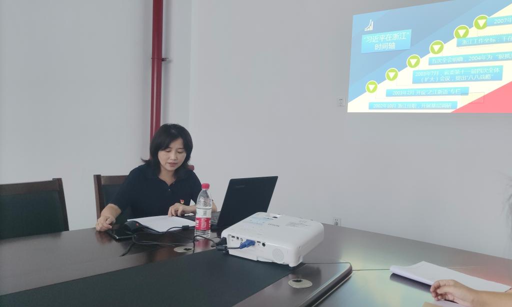 商务学院党总支副书记(主持)、常务副院长陈海飞为各位老师们讲了一堂题为《划时代思想火炬的重要萌芽——习近平在浙江》的党课。陈海飞以习近平总书记在浙江的时间轴为线,向大家讲述了浙江任职时的基层调研、开设“之江新语”专栏、提出“八八战略”、“干在实处、走在前列”的工作坐标等一系列重要历程和先进理念,以及习近平总书记对舟山建设的关心与舟山海洋经济的高速发展。通过一段段详实的资料回顾,这堂党课深刻地告诉我们,一切向前走,都不能忘记走过的路,走得再远、走到再光辉的未来,也不能忘记走过的过去,不能忘记为什么出发。百年恰是风华正茂,党的历史是最生动、最有说服力的教科书。广大党员要以学习党的历史为重点,在学习领悟中坚定理想信念,在奋发有为中践行初心使命。
