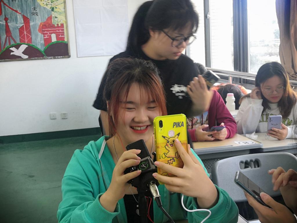 电子商务专业学生季珍妮、罗益平接受媒体采访,均表达了对本专业的热爱,肯定了直播实践活动的重要意义。