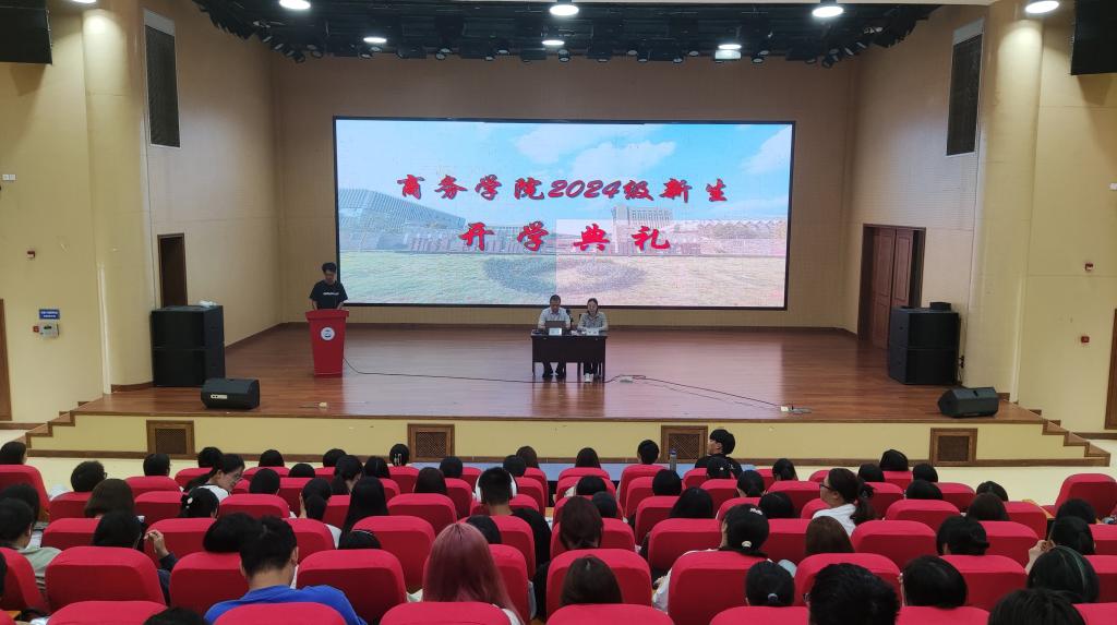 9月23日上午,商务学院在致远大讲堂举行了2024级新生开学典礼,由商务学院党总支副书记冯磊主持。