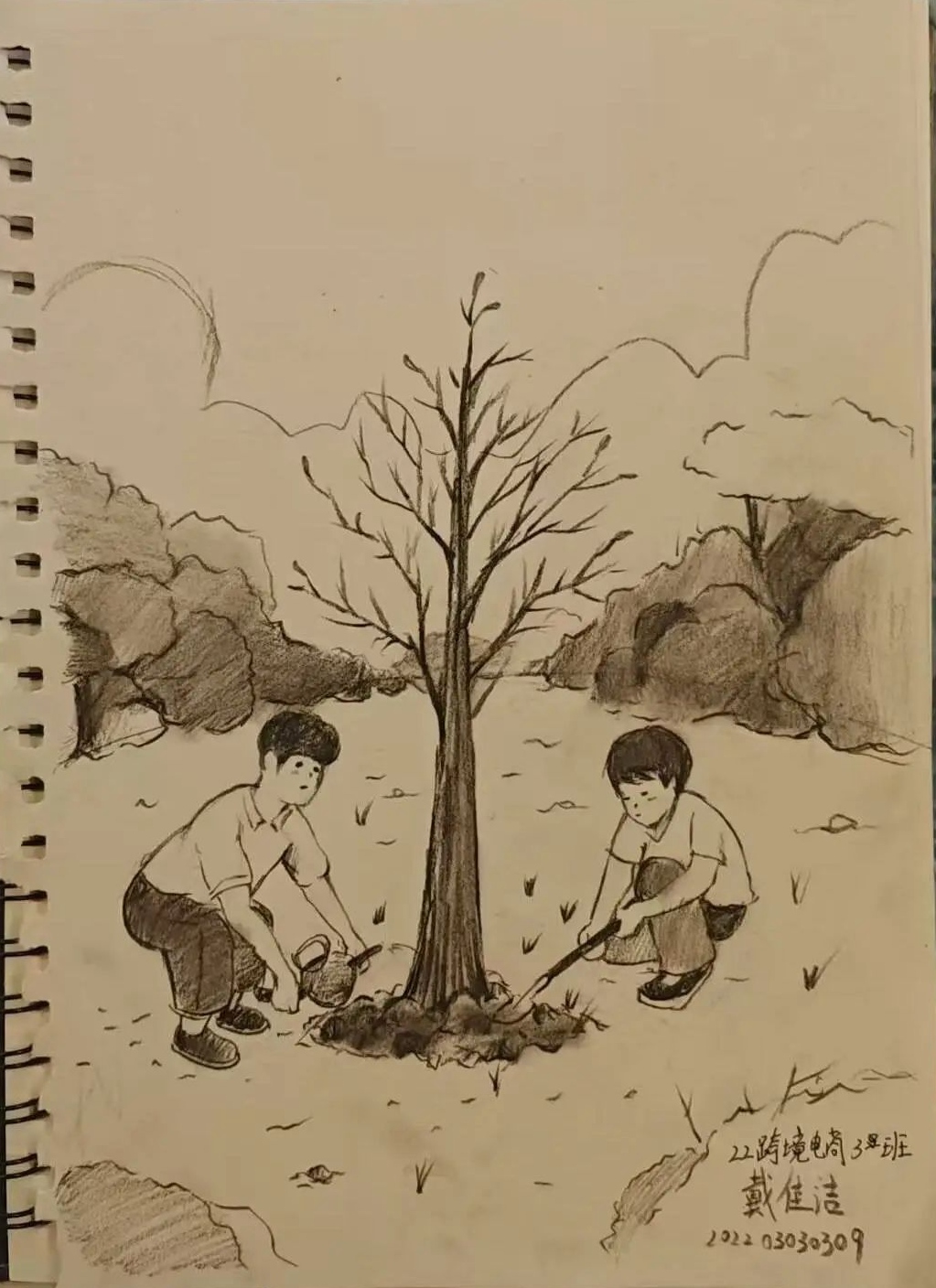 为用绘画的形式展现出当今环境的现状,或是对未来环境的期待,商务学院特此举办了“植”于心、“树”未来绘画比赛,同学们踊跃参加,最终通过角逐,22跨境电商3班戴佳洁的作品获得一等奖,22大数据技术1班胡瑾妍、24大数据与会计2班张晶晶的作品获得二等奖,24跨境电商3班徐群、24大数据与会计1班叶恩慧、24大数据技术2班张柏慧的作品获得三等奖。