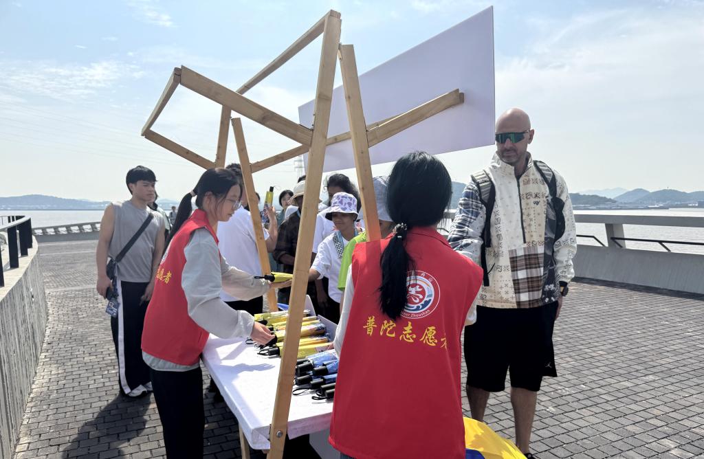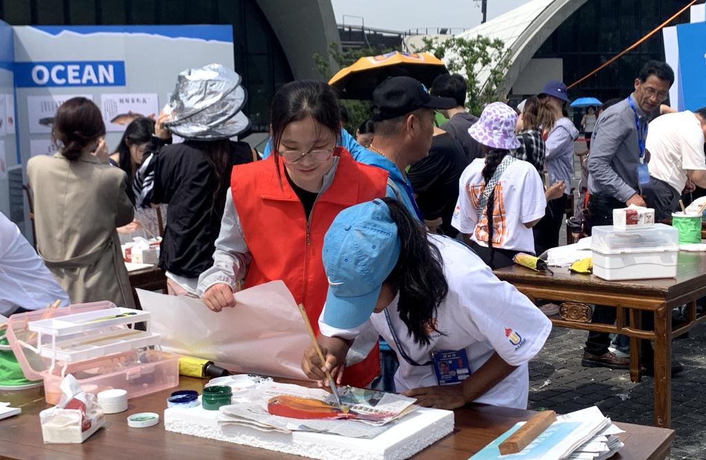 近日,第七届亚洲大学生三对三篮球锦标赛在普陀区激烈开赛。5月25日上午,来自斯里兰卡、尼泊尔、卡塔尔、菲律宾等国家和地区的大学生运动员们来到沈家门半升洞白牛广场,体验舟山渔家传统文化,商务学院选派了11名跨境电子商务专业的大学生志愿者为活动提供外语志愿服务。
