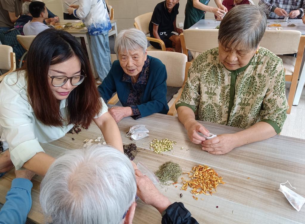 活动现场,张老师与志愿者通过讲解视频,分步骤指导老人制作龙舟挂件,全程一对一耐心协助,帮助老人顺利完成作品,收获满满成就感。在香囊制作环节,志愿者详细介绍各类香料及功效,老人们根据喜好挑选香料,亲手装入香囊,让传统手作承载美好祈愿。此外,端午歌谣传唱将活动推向高潮,老人们一同学唱《过端午》等民谣儿歌,在悠扬歌声中回忆往昔,共话端午情。