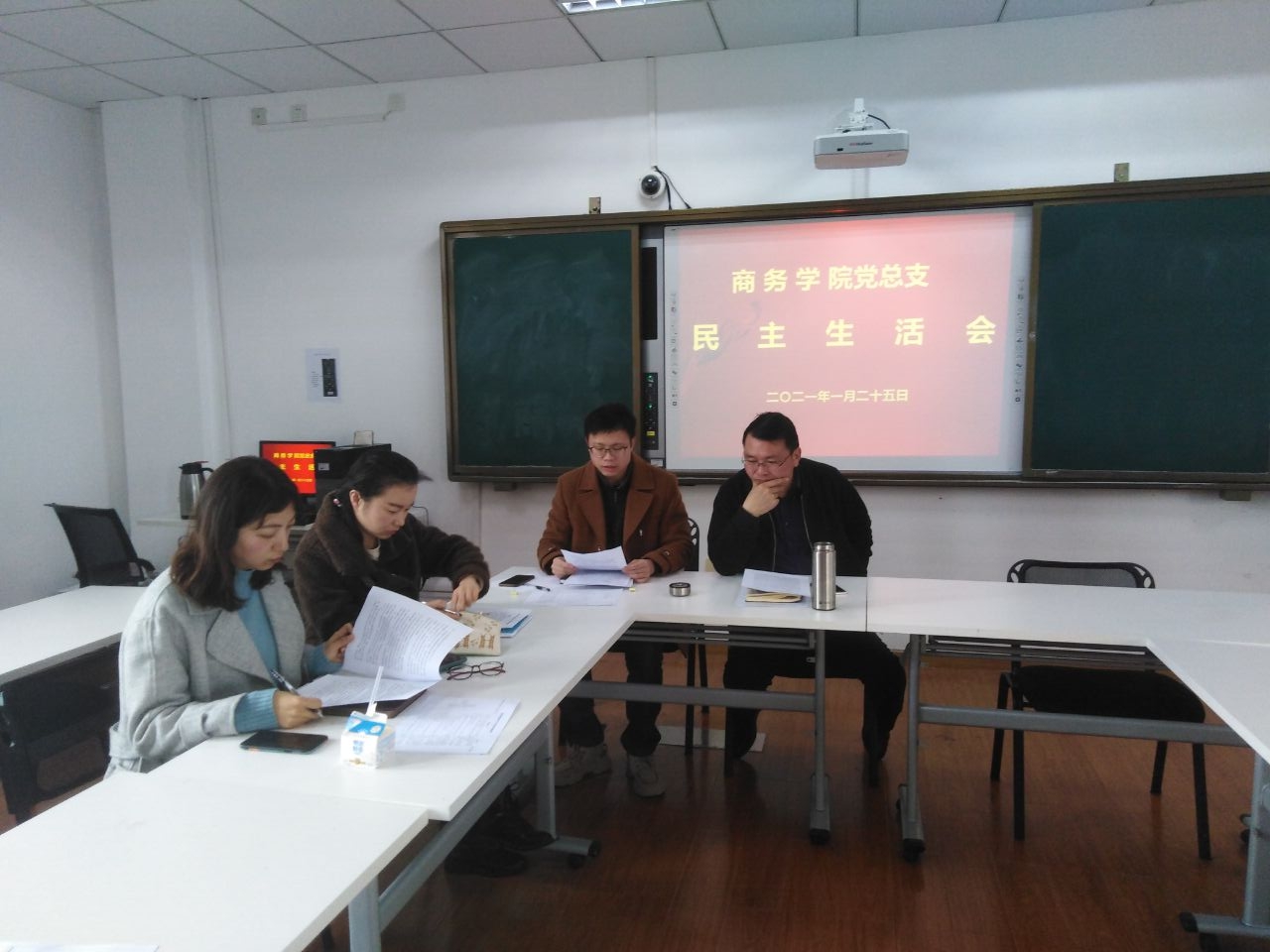1月25日上午,根据学校党委、组织部的通知精神,商务学院党总支在教学楼309召开2020年度民主生活会。学院党总支支委全体成员参加会议,学校副校长兼商务学院院长孔志华同志全程参加并指导。会议由学院党总支副书记郑永骥主持。