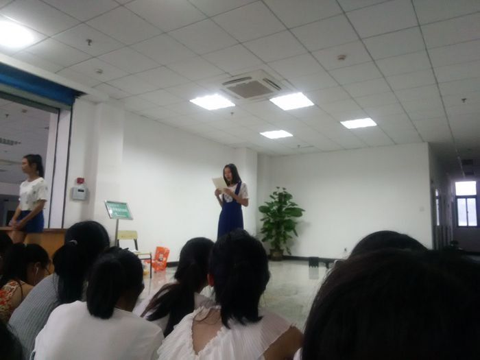 第二项活动是迎新联欢晚会。9月29日晚上,在学校图书馆二楼,一台以“彰显青春,绽放自我”为主题的迎新联欢晚会在热烈而温馨的气氛中进行着。晚会以充满活力的Gentleman舞蹈拉开帷幕, 两个舞蹈精灵的rycrycry将晚会的气氛推向第一个高潮, 201,202男生寝室带来的单身情歌与老男孩赢得了大家阵阵掌声,集体大合唱的场景让我们感受到大家庭的温暖,声情并茂的诗朗诵、稍显羞涩的小品、气氛活跃的游戏环节……让我们一起放歌,唱出对未来大学生活的向往和憧憬,在这个夜晚,大家尽情释放着青春、展示着各自的风采,享受着艺术带来的快乐,此时此刻,101个同学早已融化为一个积极向上的整体。