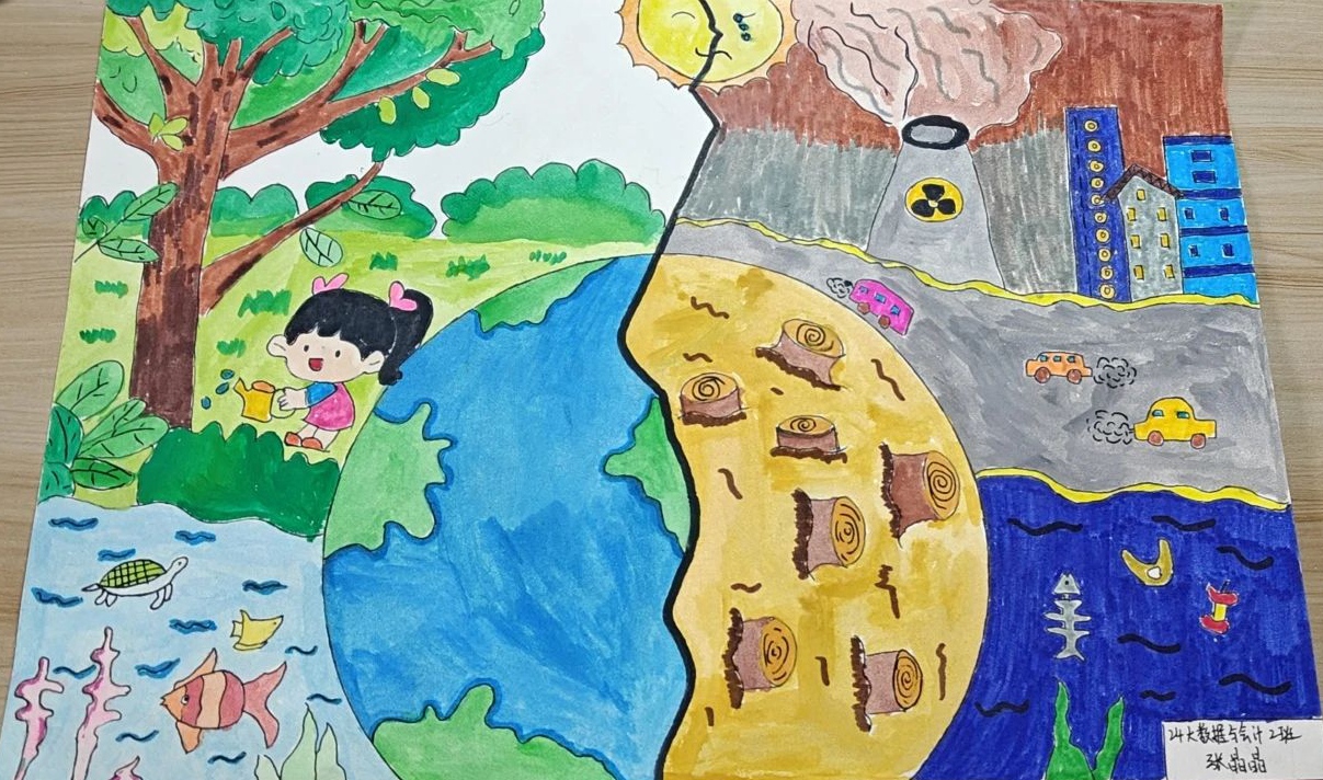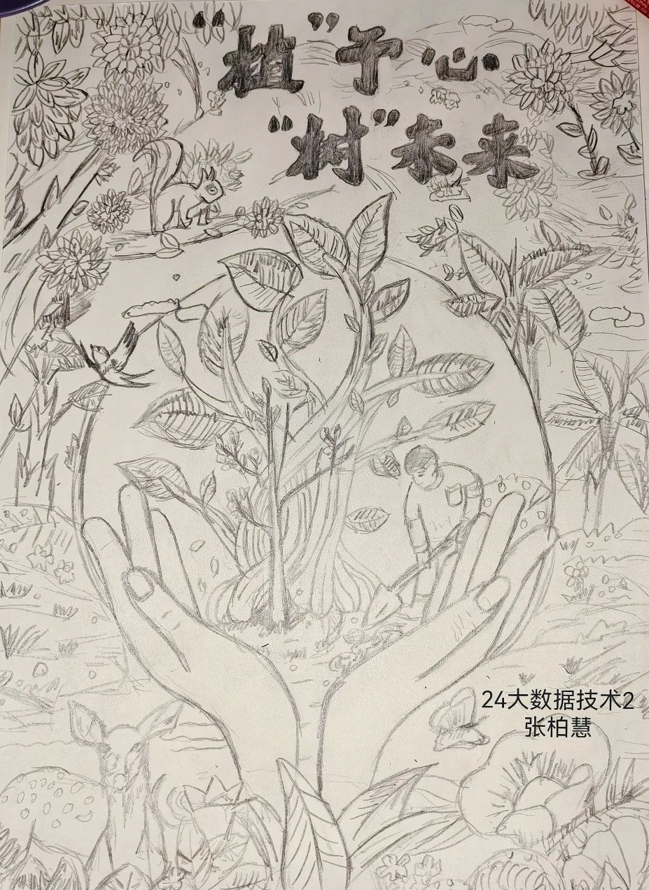 为用绘画的形式展现出当今环境的现状,或是对未来环境的期待,商务学院特此举办了“植”于心、“树”未来绘画比赛,同学们踊跃参加,最终通过角逐,22跨境电商3班戴佳洁的作品获得一等奖,22大数据技术1班胡瑾妍、24大数据与会计2班张晶晶的作品获得二等奖,24跨境电商3班徐群、24大数据与会计1班叶恩慧、24大数据技术2班张柏慧的作品获得三等奖。