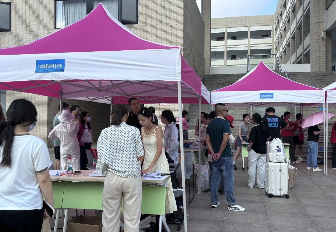 专属摊位,一站式报到超省心。各班级专属迎新摊位整齐排列,成了校园里最亮眼的风景线。每个摊位都挂着班级标识,摆放着报到流程表和校园指南。工作人员提前就位,从信息登记、材料核验到校园卡发放,全程高效衔接。新生找到自己班级的摊位,就能快速完成报到,无需奔波,归属感从踏入校园的第一步就稳稳落地。新生们在志愿者的有序引导和热情迎接中,减少了排队和聚集,大家相互帮忙搬运行李,为新生答疑解惑,亲切问候,校园里洋溢着青春的笑脸。