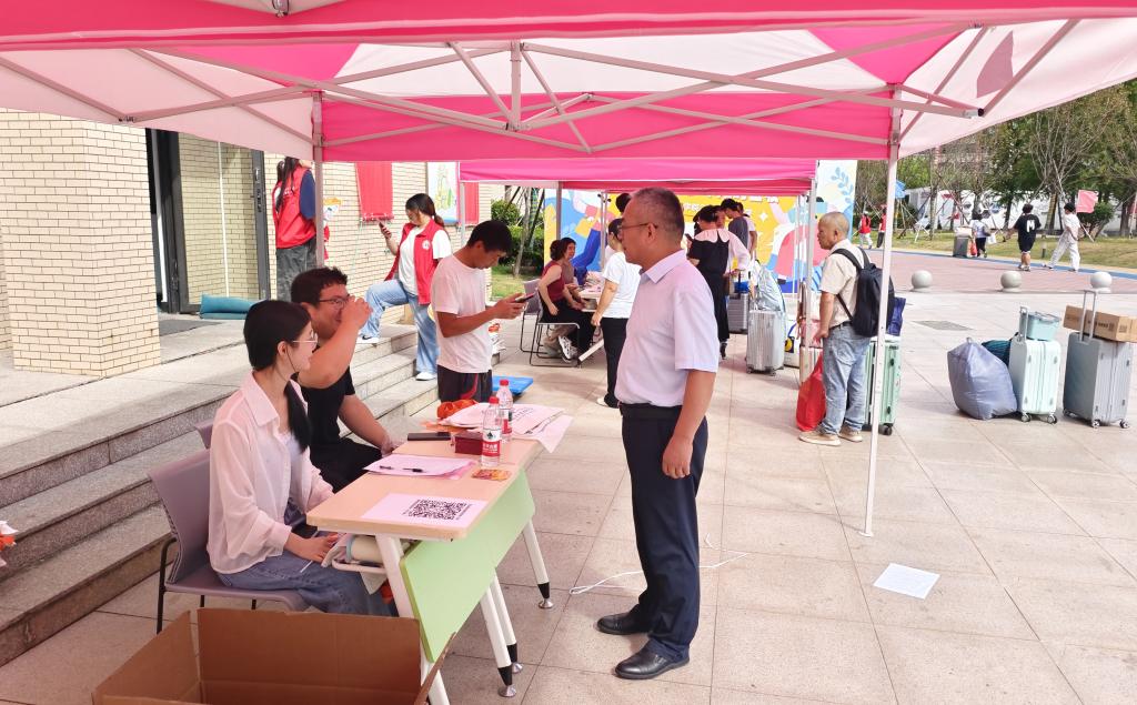 九月新生入校,商务学院开展迎新活动,以“线上预报到+现场刷卡认证”相结合的形式,简化流程,提效增速。校长郑能波走进学院迎新摊位,细致询问报到情况,为新生送上大学第一份关怀。