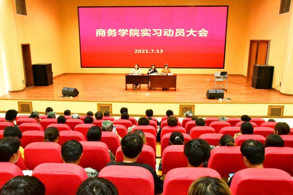 2021年7月13日中午,商务学院在学校致远大讲堂召开实习动员大会。全体实习指导老师和2019级学生、2020电商3班学生参加了大会。
