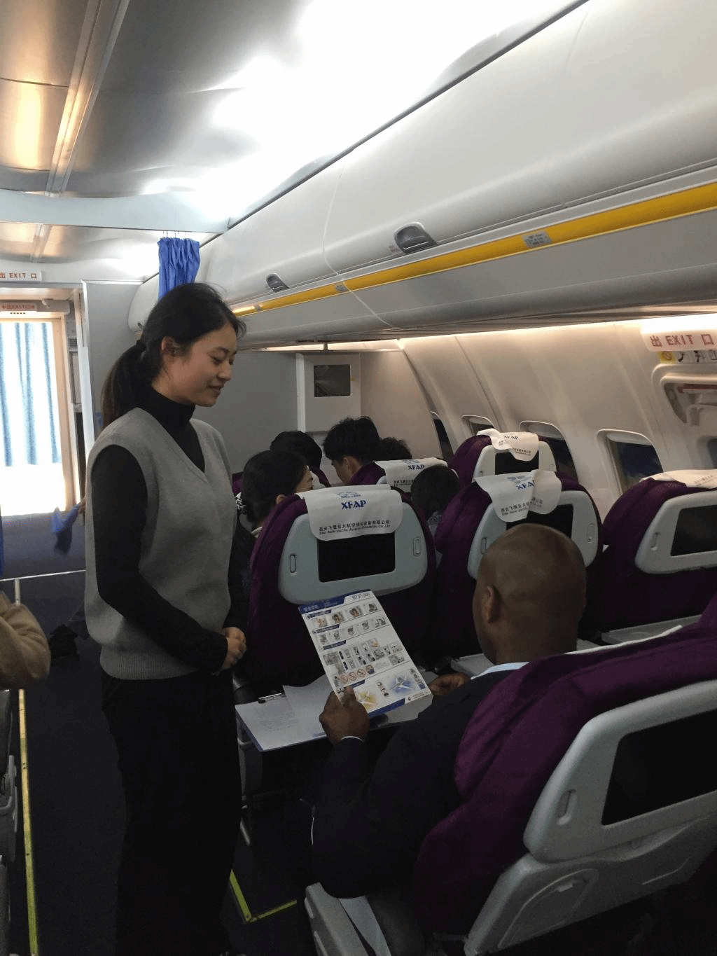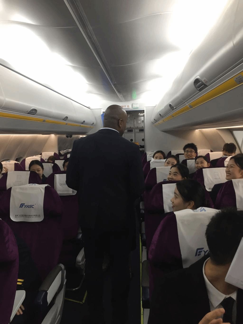 3月30日,外教走进了张喜来老师主讲的《酒店情景英语口语》和张青青老师主讲的《民航服务英语》课堂,拉开了推进英语教学教考分离改革实践的序幕。空乘模拟实训舱里19级空乘1班正在进行《民航服务英语》项目考核(出口座位确认),Jones以“考官”兼“乘客”的身份进入课堂。 “乘务员”们(学生)需要用英语对Jones做“出口座位评估并确认”,随后Jones从“乘客”的角度为学生点评和建议,并给出“考官”分数。