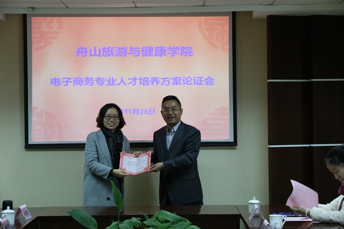 论证会上,成立了学校电子商务专业指导委员会,由全国电子商务职业教育教学指导委员会副主任、浙江商业职业技术学院院长张宝忠教授为主任委员,中国(舟山)海洋科学城建设管理局局长助理周敏华、市商务局贸发秩序处(电子商务处)处长胡寒萍等6位专家为成员。