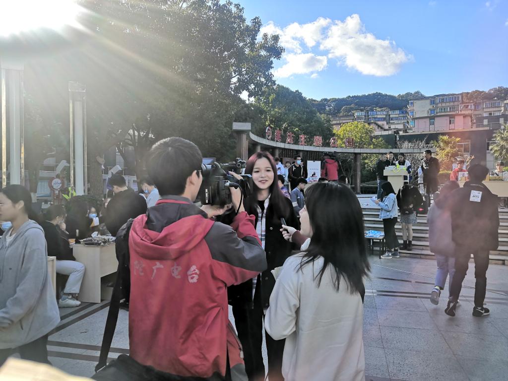 电子商务专业学生季珍妮、罗益平接受媒体采访,均表达了对本专业的热爱,肯定了直播实践活动的重要意义。