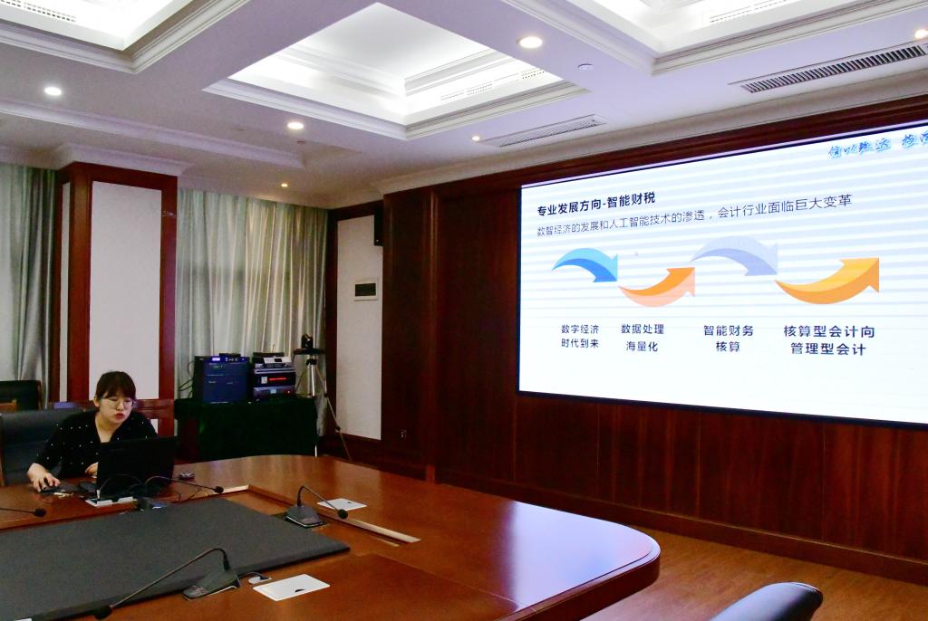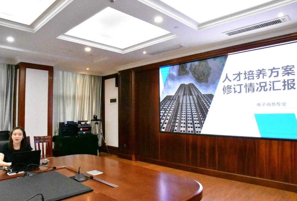 商务学院党总支副书记(主持)、常务副院长陈海飞介绍了商务学院总体情况和人才培养总体方案总体概况。