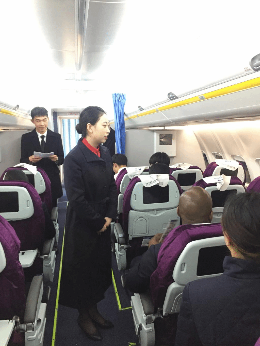 3月30日,外教走进了张喜来老师主讲的《酒店情景英语口语》和张青青老师主讲的《民航服务英语》课堂,拉开了推进英语教学教考分离改革实践的序幕。空乘模拟实训舱里19级空乘1班正在进行《民航服务英语》项目考核(出口座位确认),Jones以“考官”兼“乘客”的身份进入课堂。 “乘务员”们(学生)需要用英语对Jones做“出口座位评估并确认”,随后Jones从“乘客”的角度为学生点评和建议,并给出“考官”分数。
