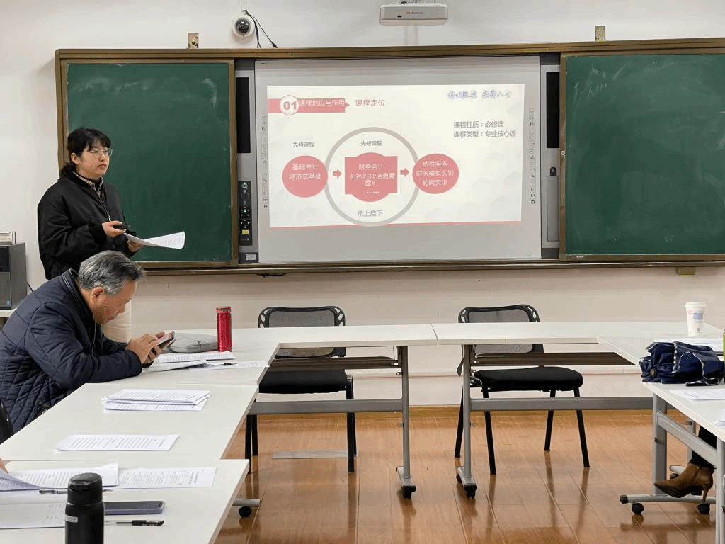 说课过程中,教师们围绕说课主题,从课程定位、学情分析、教法学法、教学过程、教材分析等几个方面展开。说课教师教态落落大方,语言表达轻松流畅,独到的教学环节和巧妙的教学设计,让说课异彩纷呈,为教学提供了新思路和新方法,充分展现了教师风采。与此同时,也暴露出一些值得继续深入思考和探索的问题。在教师们完成说课后,沈凤池教授、陈海飞老师及殷好好教授对教师们说课中的亮点部分给予了认可,同时也指出了当前存在的不足,以及对会计专业课程设计的思考。