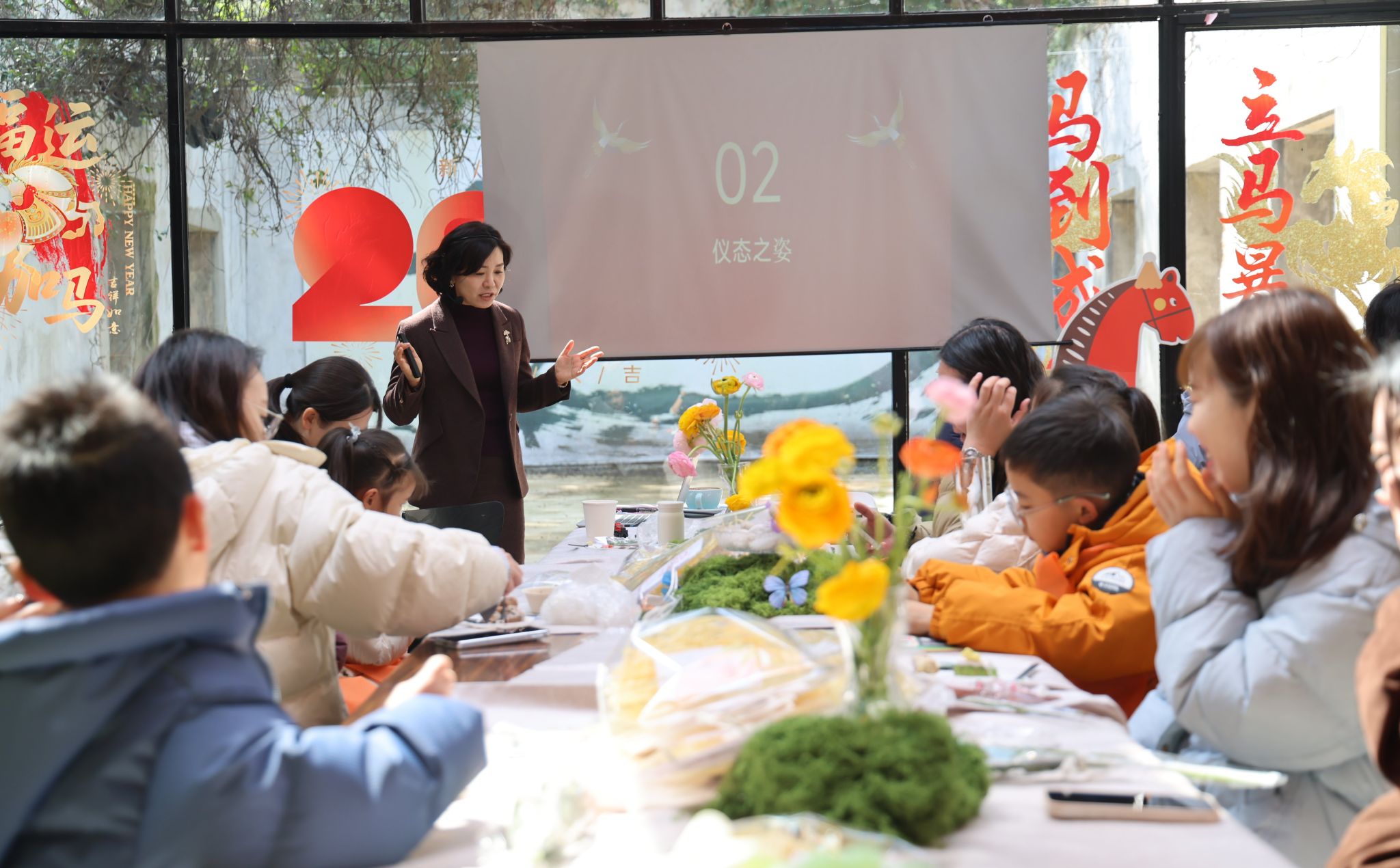 培训紧扣职场形象、优雅仪态、色彩搭配、礼仪美育四大核心,现场鲜花簇拥、咖啡飘香、甜点精致,在轻松雅致的氛围中,开启职场礼仪与亲子美育的美好之旅。刘杨老师以专业讲解+趣味互动的形式,带领女职工学习职场仪容仪表规范、优雅仪态技巧与高效色彩搭配方法,全面提升职业形象与自信气场。现场还特设了亲子互动环节,“优雅小镜子”“最美问候小使者”“礼仪小剧场” 等趣味游戏,让家长与孩子在默契配合中学习礼仪知识、传递感恩心意,既让女职工掌握亲子美育实用方法,促进亲子沟通与和谐家风营造,也让孩子们在欢乐中习得文明礼仪、感受美学魅力。