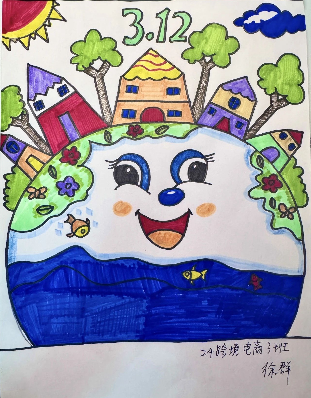 为用绘画的形式展现出当今环境的现状,或是对未来环境的期待,商务学院特此举办了“植”于心、“树”未来绘画比赛,同学们踊跃参加,最终通过角逐,22跨境电商3班戴佳洁的作品获得一等奖,22大数据技术1班胡瑾妍、24大数据与会计2班张晶晶的作品获得二等奖,24跨境电商3班徐群、24大数据与会计1班叶恩慧、24大数据技术2班张柏慧的作品获得三等奖。